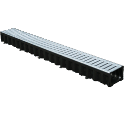 Высота лотка 80 мм, что позволяет использовать его в местах с ограниченной глубиной заложения. Гладкая внутренняя поверхность обеспечивает высокую скорость течения ливневых вод, а эффективная система крепления решетки к каналу не позволяет ей выскакивать с посадочного места.